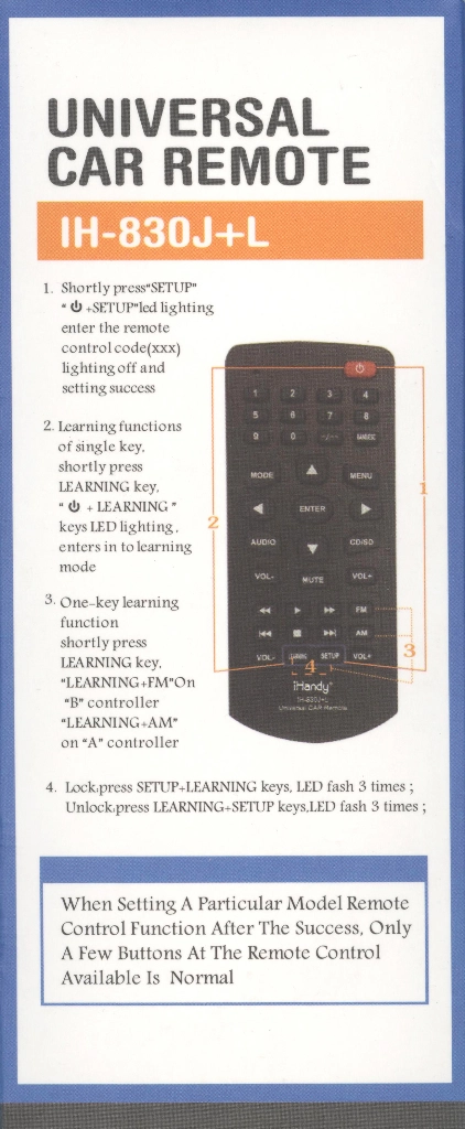 Купить "Универсальный пульт Huayu IHANDY CAR IH-830J+L new"