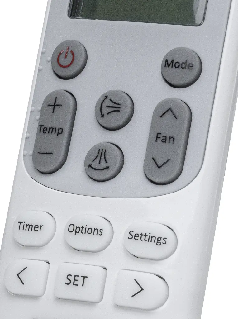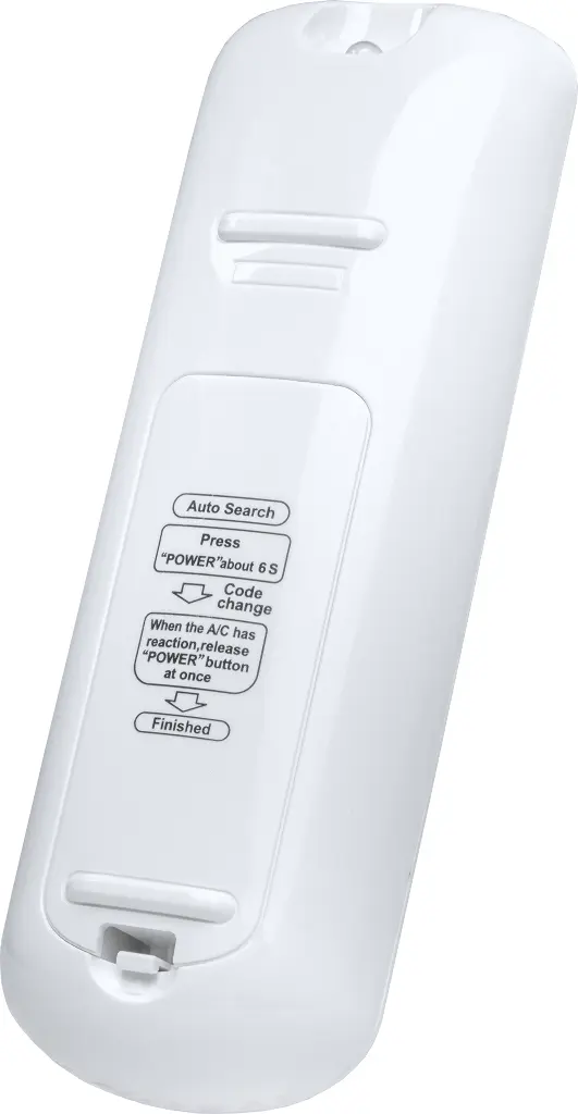 Нажмите и удерживайте кнопку "Power". Через 6 секунд, пульт войдёт в режим автоматического поиска кода. Пульт начнет отображать и посылать разные команды включения раз в секунду. Когда кондиционер включится, отпустите кнопку "Power". Настройка завершена.