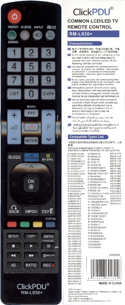 Универсальный пульт Clickpdu RM-L930+ для телевизоров марки LG.