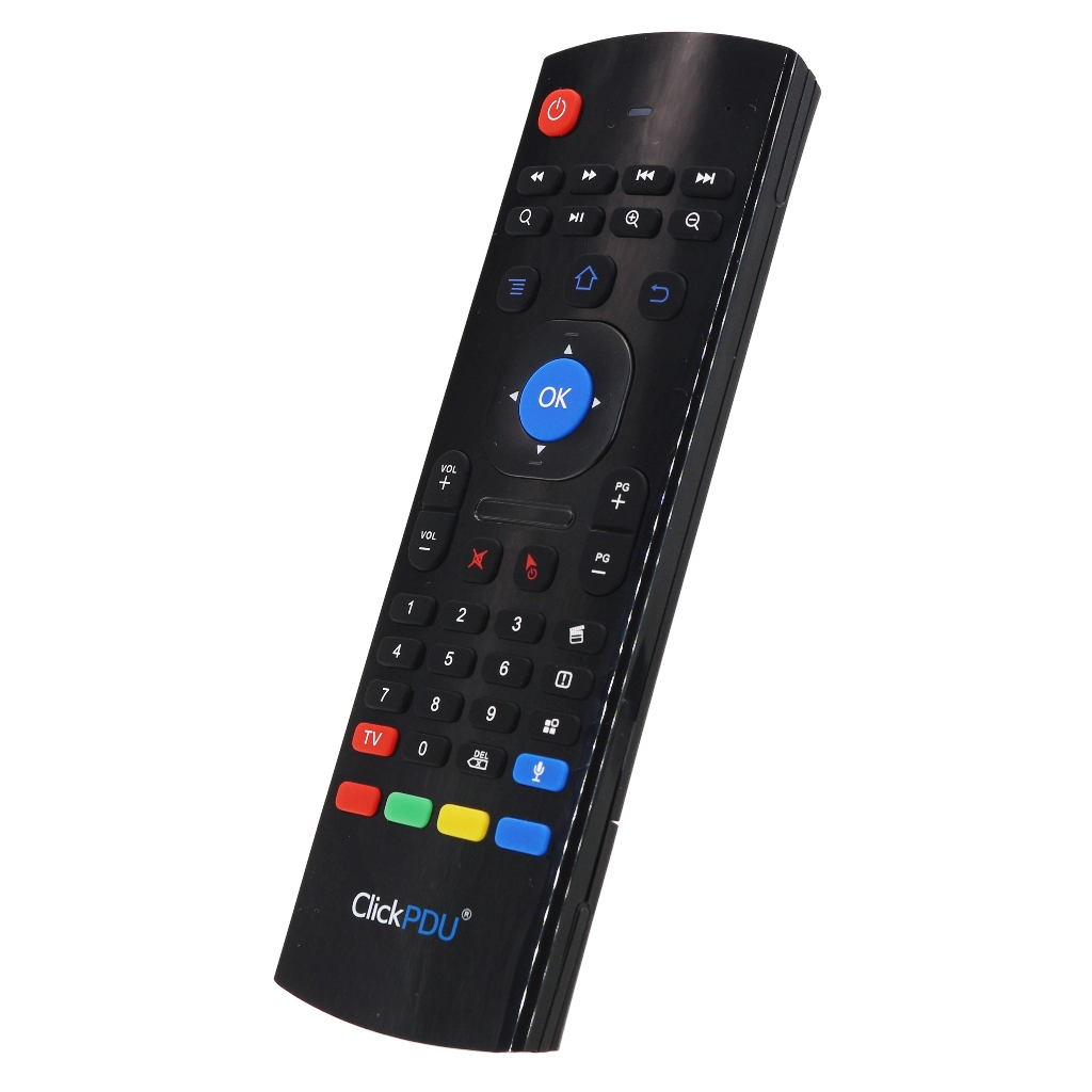 Универсальный пульт ClickPDU MX3M Air Mouse - беспроводная аэро мышь со встроенным гироскопом, голосовым управлением, кнопочным управлением основными функциями устройства, обладает QWERTY клавиатурой на обратной стороне пульта, а так же возможность обучения кнопки POWER от любого пульта. Пульт способен осуществлять голосовое управление в системах Android IP TV, а так же управление голосовыми помощниками на ПК с системами Windows, Linux, Mac OS (Яндекс.Алиса, Google ассистент, MAC OS Siri).