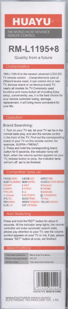 Купить "Универсальный пульт Huayu RM-L1195+8"