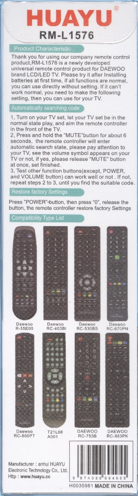 Универсальный пульты Huayu RM-L1576 для телевизоров DAEWOO