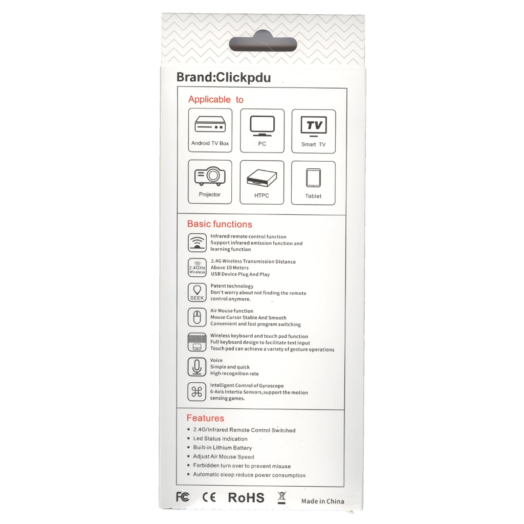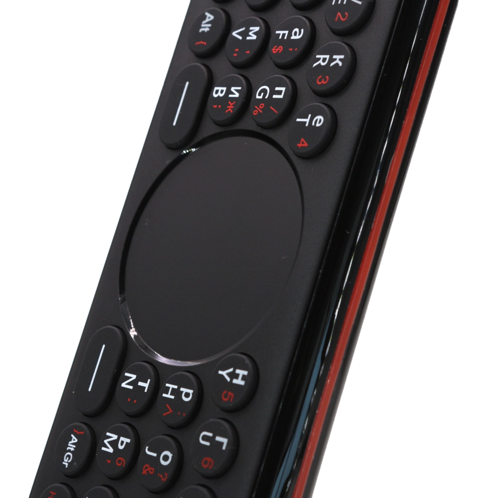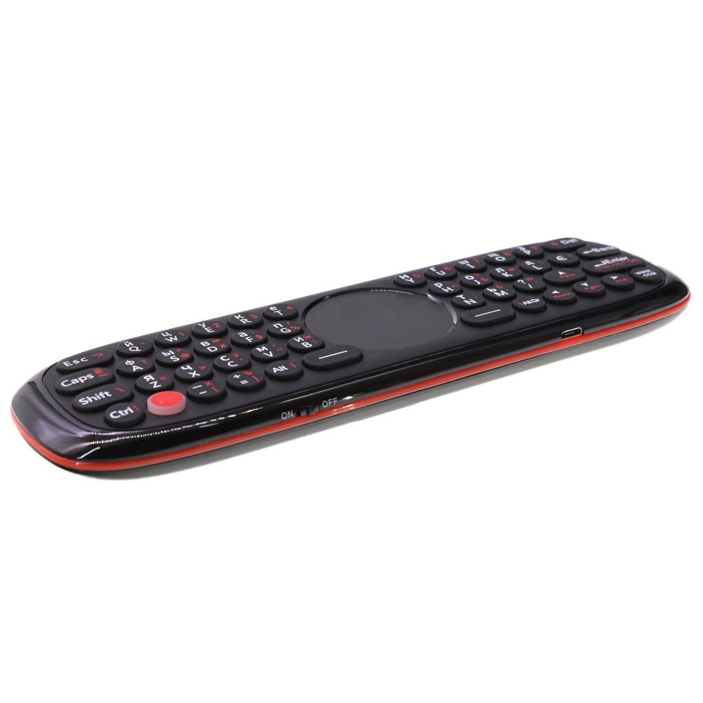 Универсальная аэромышь ClickPDU W2 Air Mouse - беспроводная аэромышь со встроенным гироскопом, тачпадом, голосовым управлением, кнопочным управлением основными функциями устройства, кириллической qwerty клавиатурой на обратной стороне, а так же возможность обучения кнопок ИК сигналам от другого пульта. Пульт способен осуществлять голосовое управление, управлять курсором и вводить текст с клавиатуры в системах Android IP TV, а так же управление голосовыми помощниками, управление курсором и ввод текста с клавиатуры на ПК с системами Windows, Linux, Mac OS (Яндекс.Алиса, Google ассистент, MAC OS Siri).