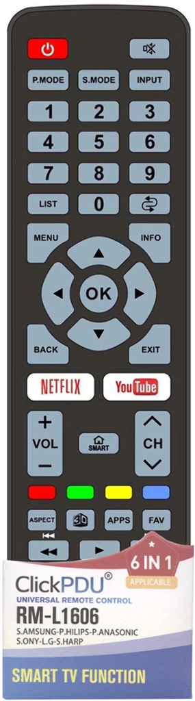 Универсальный пульт ClickPDU RM-L1606 для телевизоров Samsung LG Sony Panasonic Philips Sharp