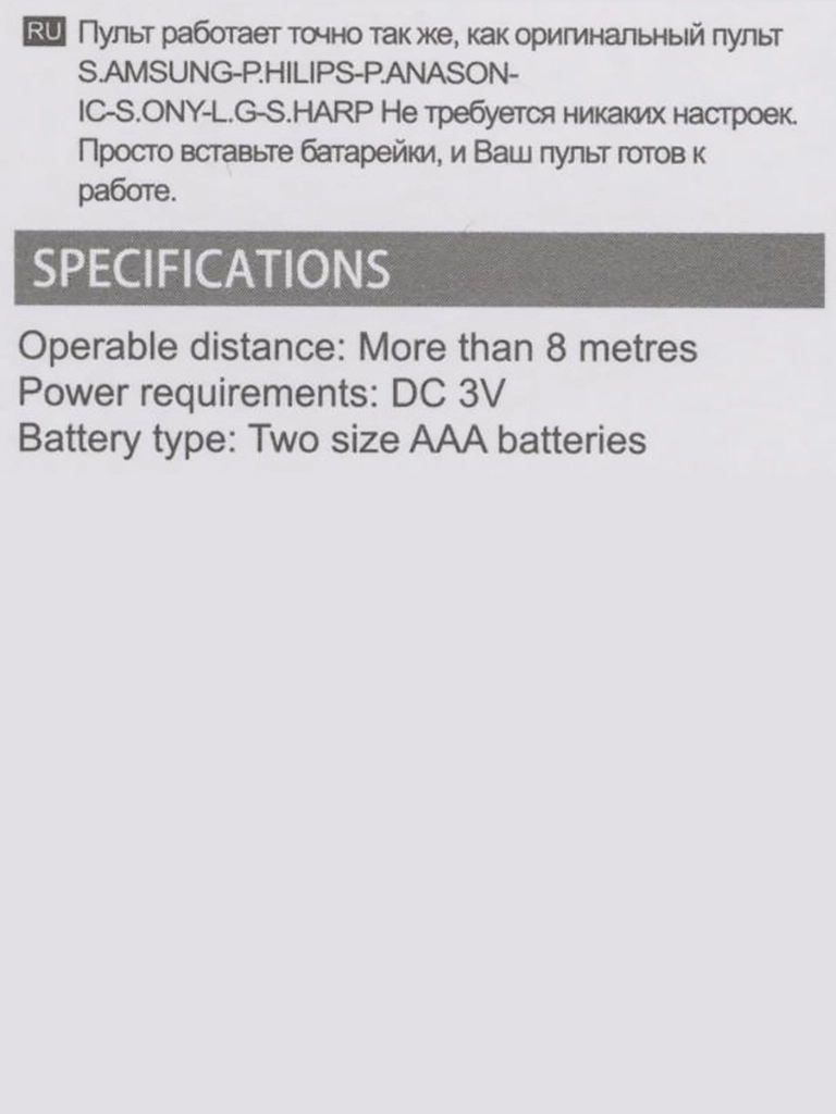 Пульт работает без какой либо настройки с телевизорами брендов Samsung LG Sony Panasonic Philips Sharp. Модель имеет кнопки онлайн кинотеатров Netflix и YouTube, а так же кнопку 3D.
