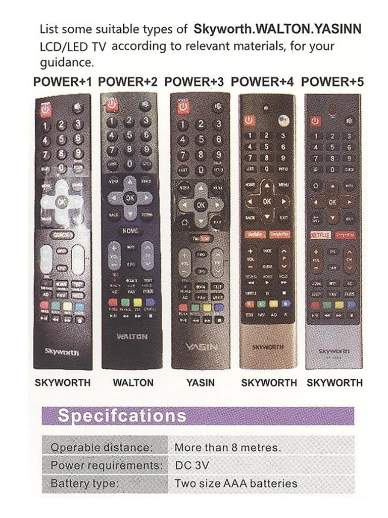Универсальный пульт HUAYU для телевизоров брендов Skyworth а также Walton и Yasin в схожих корпусах.