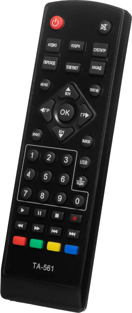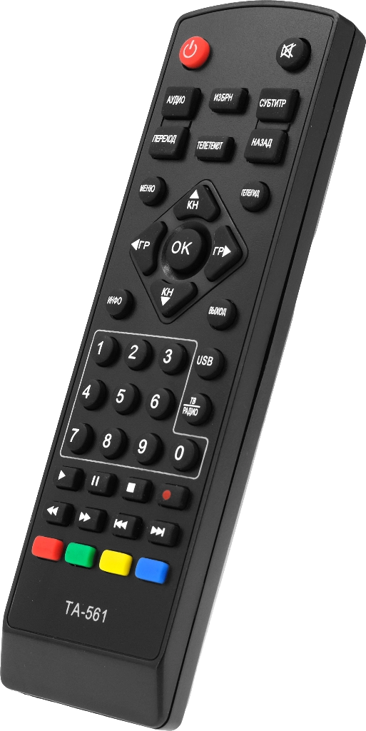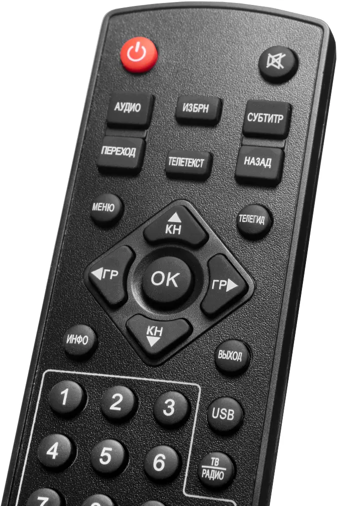 Пульт на ИК сигнале, не требует никаких настроек, достаточно установить батарейки и наслаждайтесь просмотром любимых каналов и передач!