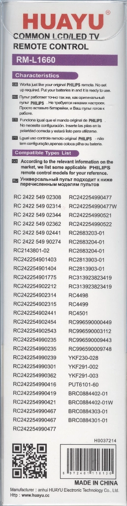 Универсальный пульт HUAYU для телевизоров бренда PHILIPS