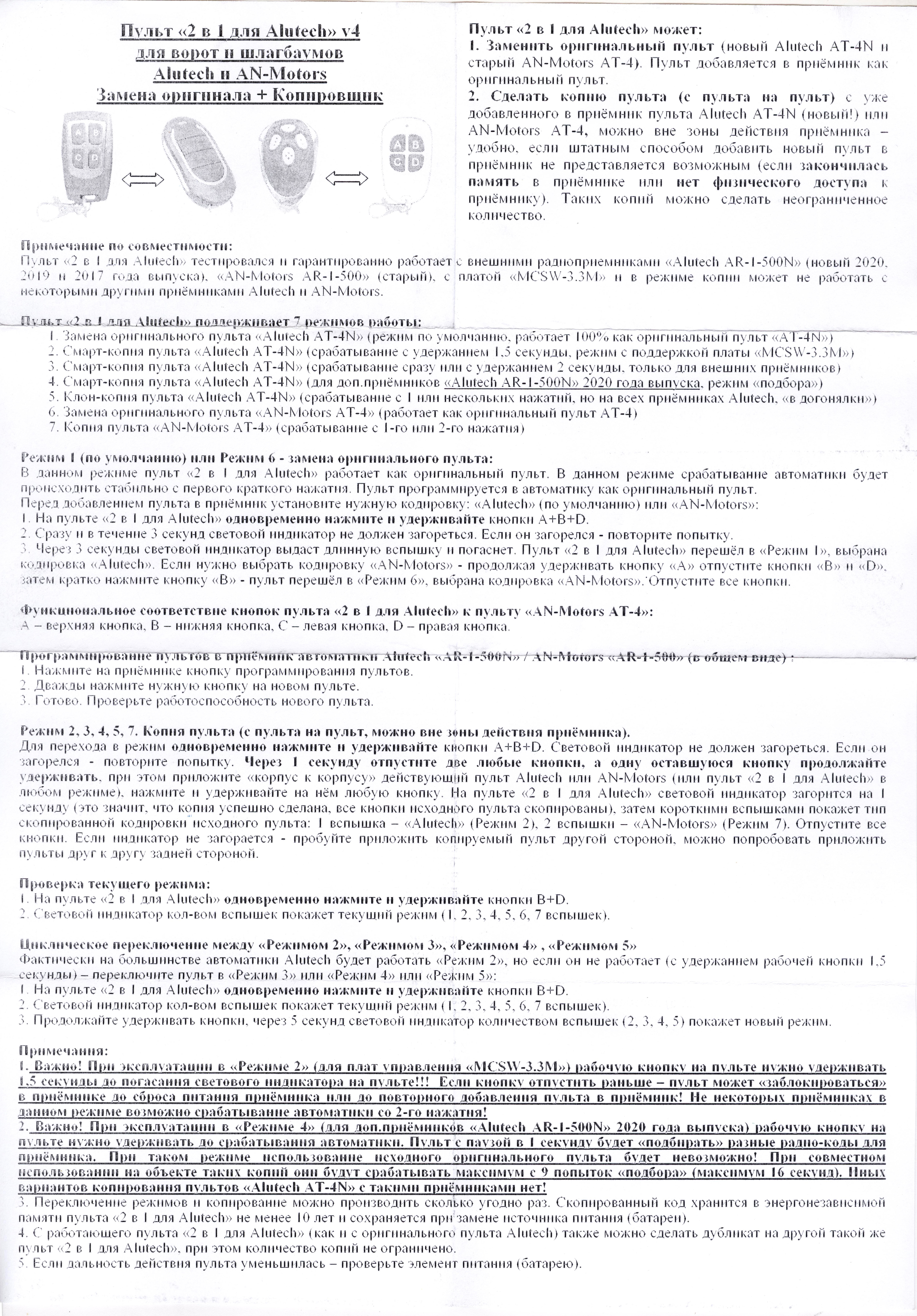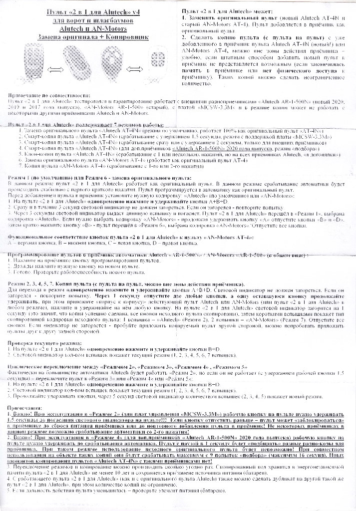 Пульт DUBLICATOR ДУБЛИКАТОР для Alutech V4