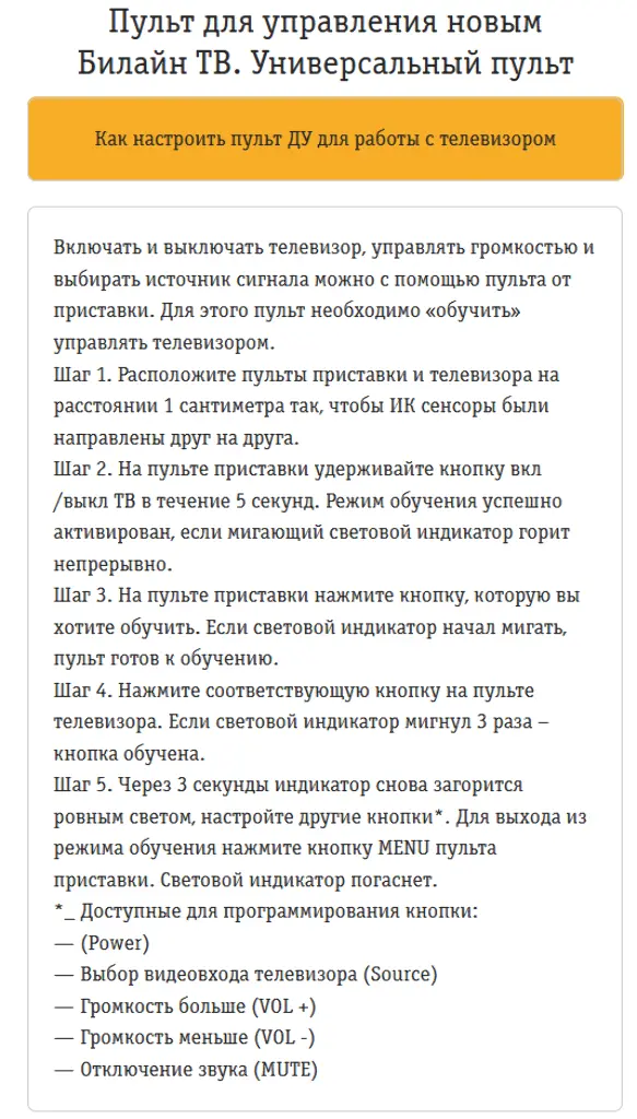 На пульте можно запрограммировать кнопки управления громкостью, выбор источника сигнала и включения/выключения телевизора.
