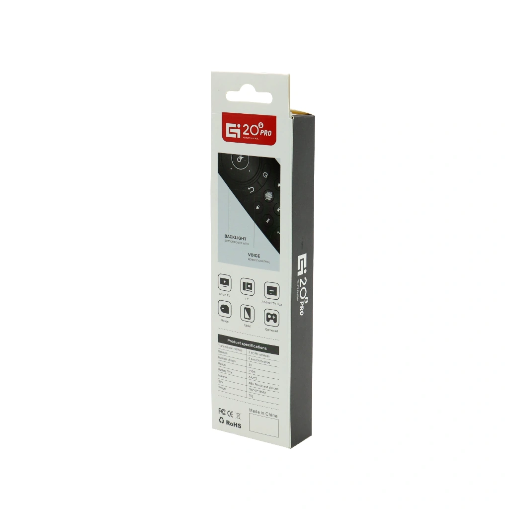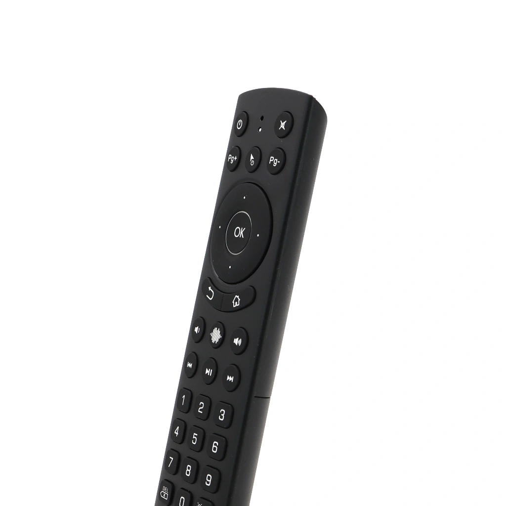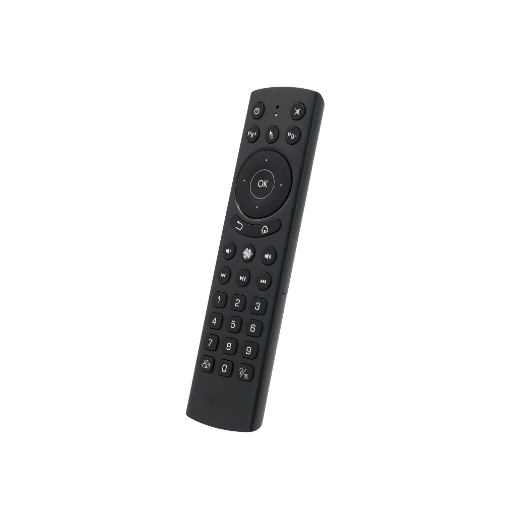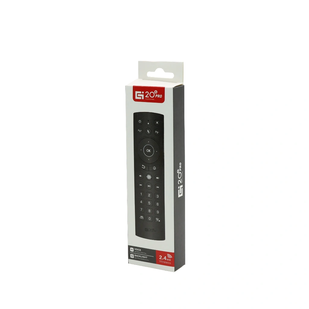 Универсальный пульт аэромышь с голосовым управлением. Поддерживает управление современными смарт-телевизорами, Android приставками, Windows, MAC и Linux устройствами. Подключается к устройству с помощью USB Type A донгла. Также пульт имеет 2 ИК-обучаемые кнопки (Power и MUTE), рекомендуется обучить кнопку POWER с оригинального пульта от устройства, т.к. не все устройства могут запустить команду включения через USB порт. Для обучения кнопки Power требуется зажать её на ПДУ G20 PRO на 5 секунд, затем направить оригинальный пульт на ИК диод G20 PRO на расстоянии 2-3 см, затем нажать соответствующую кнопку на оригинале. Дождаться, когда красный светодиод на G20 PRO погаснет и проверить работу функции. Для обучения кнопки MUTE - всё тоже самое, только зажимать нужно кнопку MUTE.