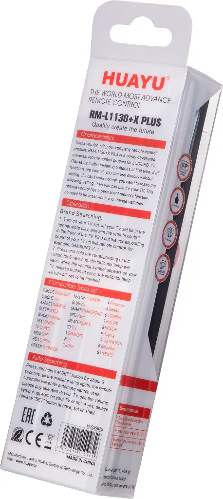 Все это в совокупности с современной микроэлектроникой дает пульту бренда HUAYU надежность и долговечность