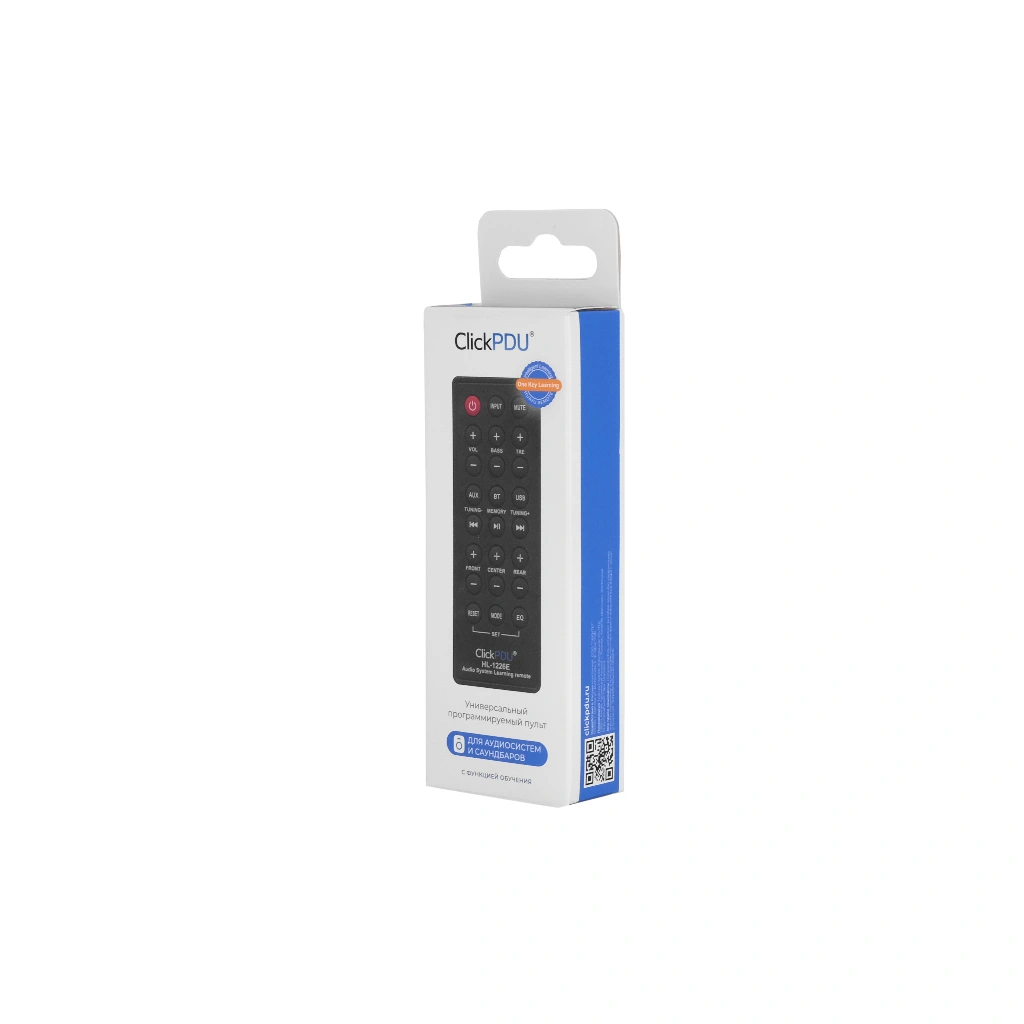 Универсальный обучаемый пульт для саундбаров и любых аудиосистем и колонок, управляемых с помощью ИК пульта. Для настройки требуется рабочий образец пульта, с которого вы сможете перенести ИК команды на новый пульт.