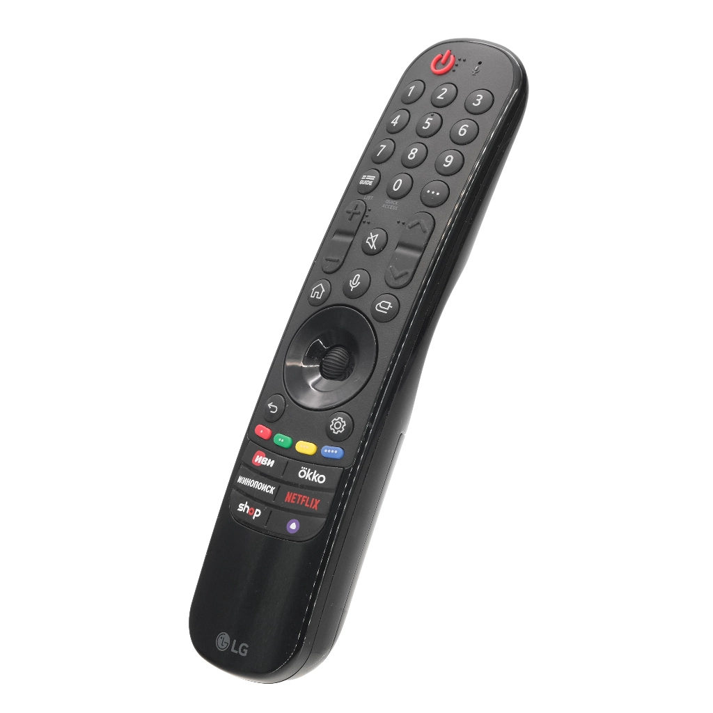 Пульт Magic Motion MR23 для SMART телевизоров LG 2023 года выпуска. Имеет функции управления голосом, аэромышь, Кинопоиск, ИВИ, ОККО.