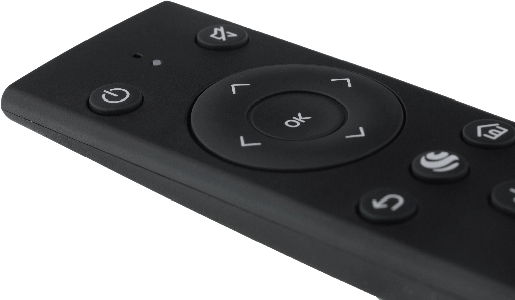 Пульт имеет голосовое управление, для активации необходимо сопряжение с телевизором либо приставкой приставкой Sber Salut TV: