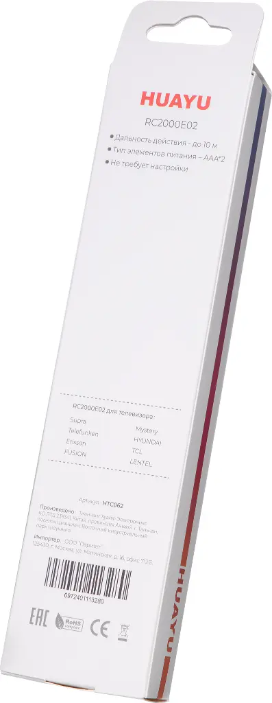 Пульт HUAYU заменяет модели пультов в похожем корпусе для телевизоров бренда Thomson, Artel, Supra, Telefunken, FUSION, TCL, Mystery, Hyundai, Erisson, Lentel