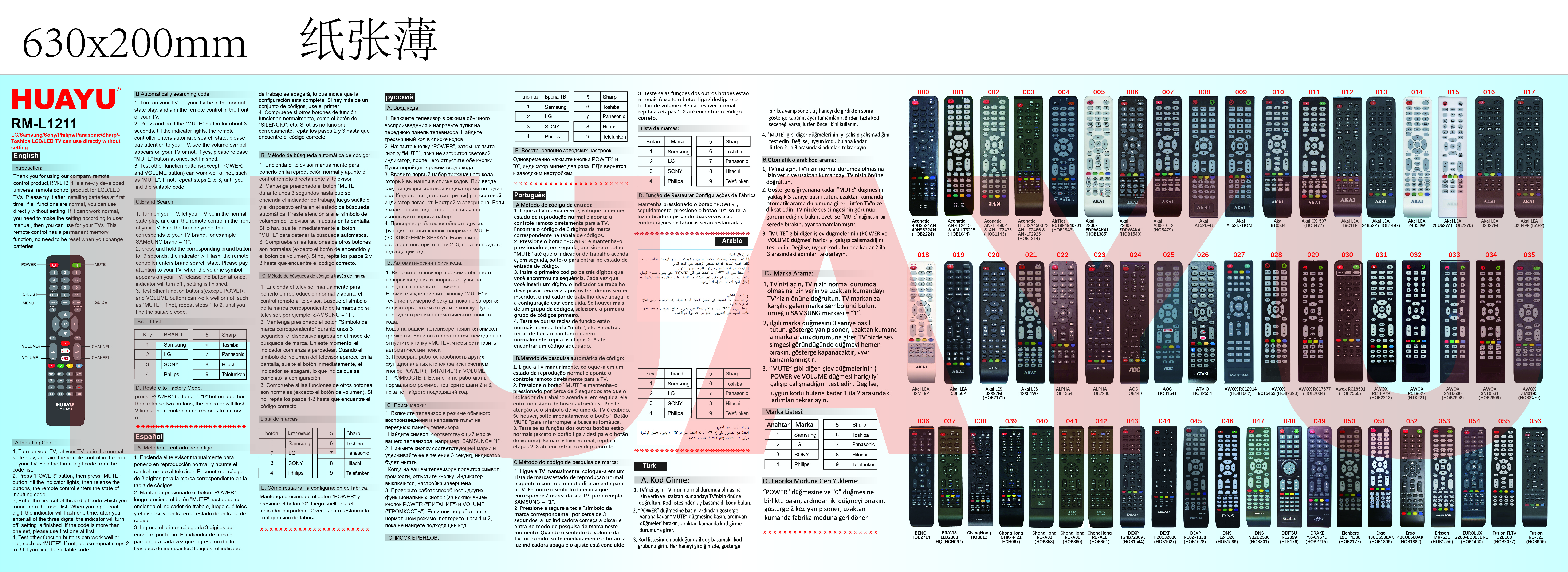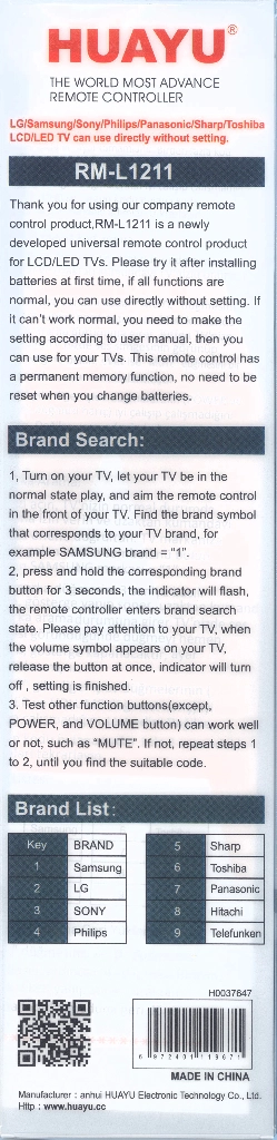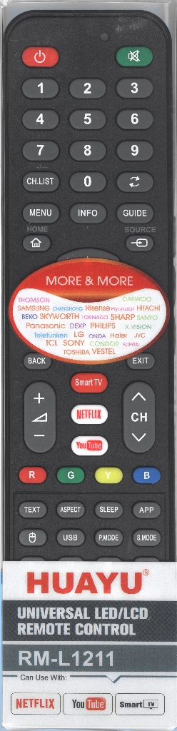 Универсальный пульт для телевизоров различных брендов! Заменяет большинство пультов в схожих корпусах, поддерживает более 25 брендов производителей телевизоров. Настройка пульта производится ручным вводом кода, автоматическим вводом кода или поиском по бренду. В комплекте с каждым пультом есть подробная инструкция на русском языке + таблица с изображениями заменяемых пультов и кодами настройки.