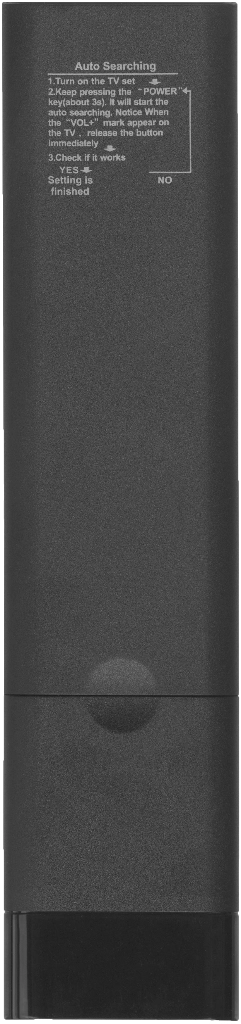 2.Нажмите и удерживайте кнопку "POWER" в течение примерно 3 секунд, пока не загорятся индикаторы, затем отпустите кнопку. Пульт перейдет в режим автоматического поиска кода. Когда на вашем телевизоре появится символ громкости. Если он отображается, немедленно отпустите кнопку «POWER», чтобы остановить автоматический поиск.