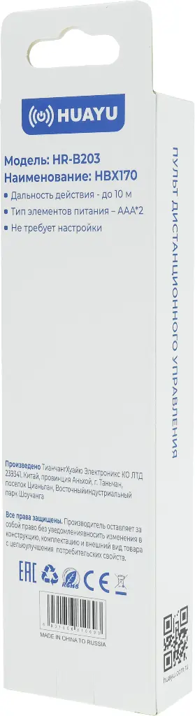 Все это в совокупности с современной микроэлектроникой дает пульту бренда HUAYU надежность и долговечность