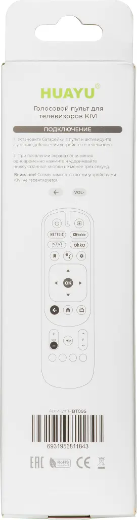Пульт HUAYU заменяет модели пультов в похожем корпусе для телевизоров бренда KIVI
