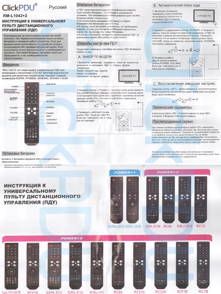 Пульт HUAYU заменяет модели пультов в похожем корпусе для телевизоров брендов Supra, Fusion