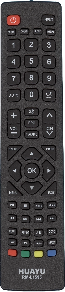 Пульт HUAYU заменяет модели пультов в похожем корпусе для телевизоров бренда Prestigio, Ok., Schaub Lorenz, Telefunken, Горизонт (Horizont), Scoole, Polar, Soundmax,TopDevaice
