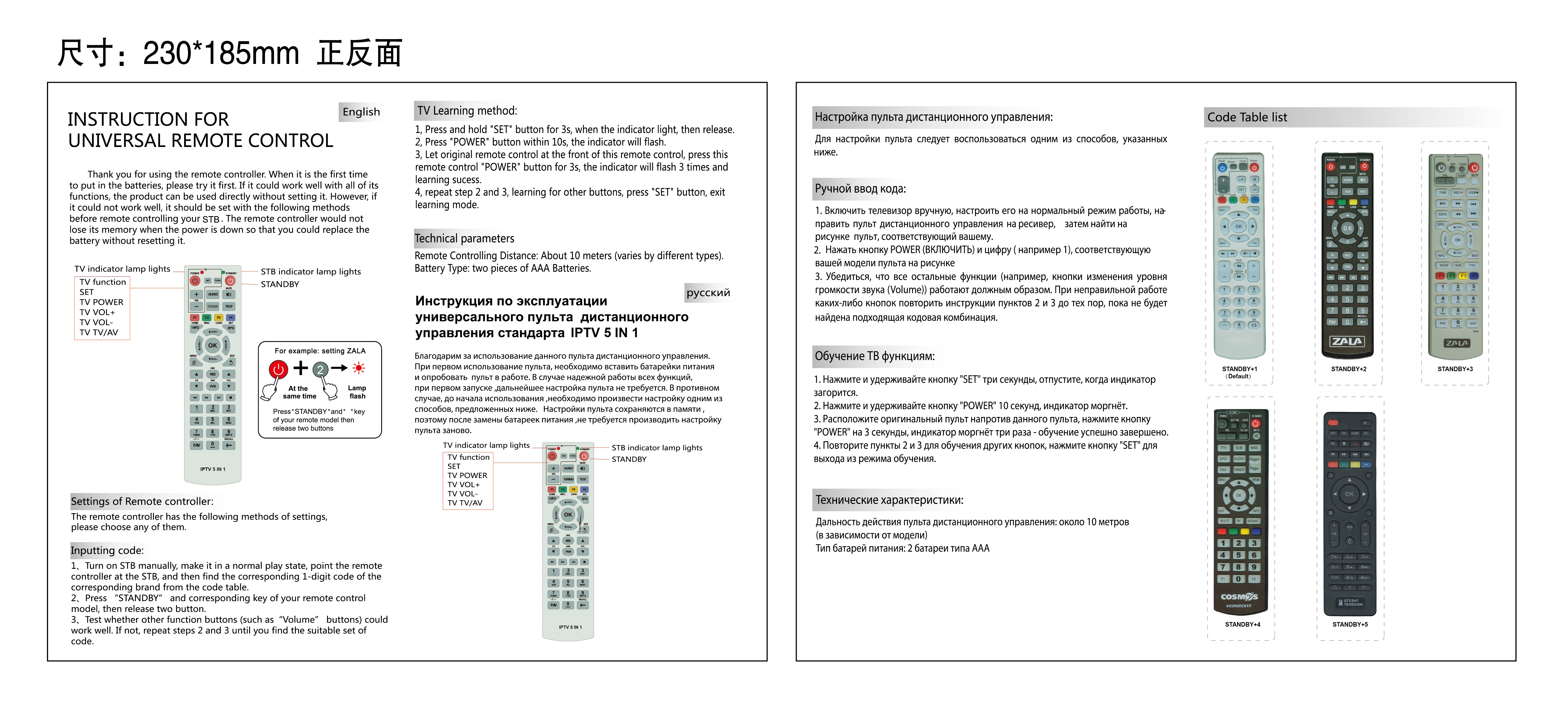 Универсальный пульт для IPTV приставок ZALA и COSMOS HORIZONT