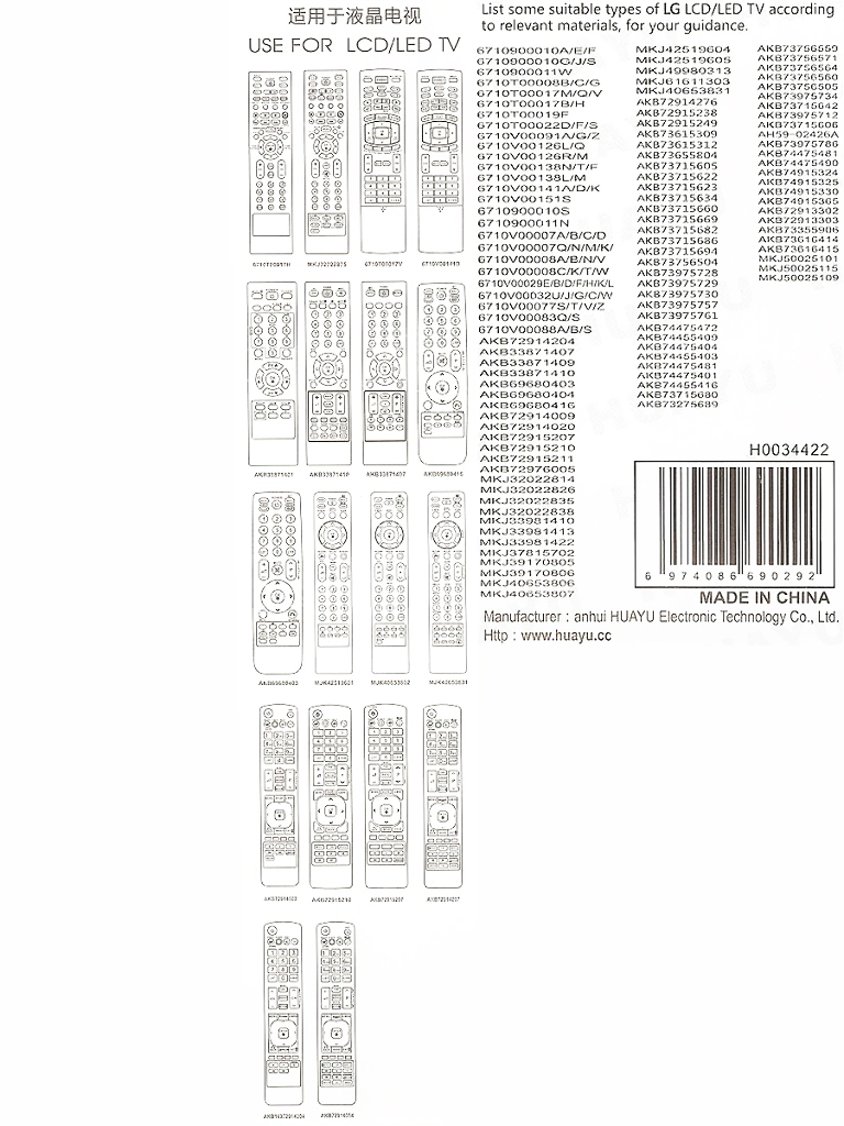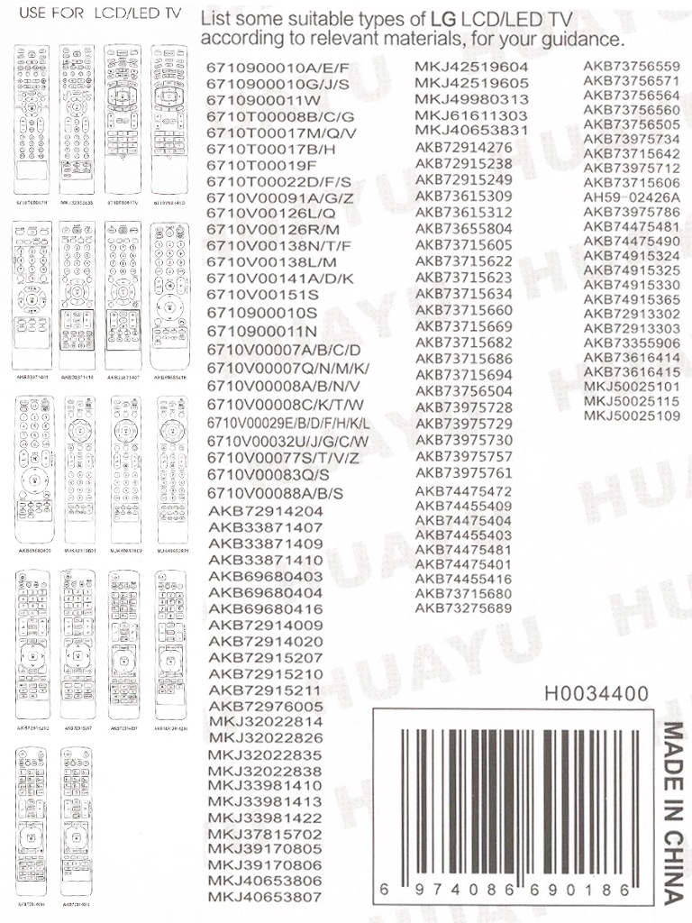 Купить "Пульт Huayu AKB74475401 для телевизора LG"