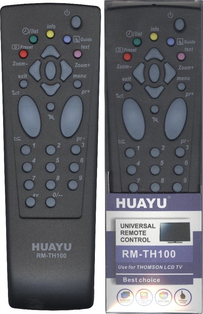 Пульт HUAYU заменяет модели пультов в похожем корпусе для телевизоров бренда Thomson,TCL