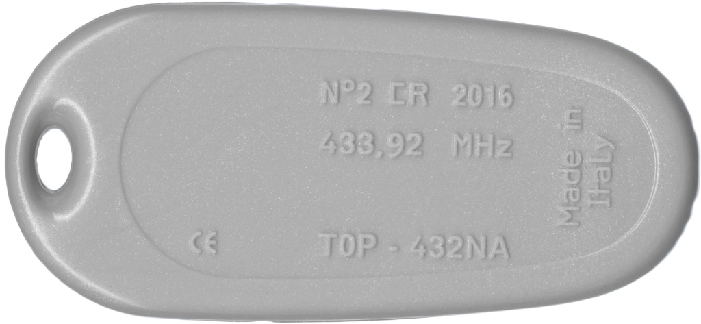 Пульт TOP 432NA для шлагбаумов и ворот.Краткое руководство:Для добавления брелков TOP:1 - нажать 2 кнопки одновременно и удерживать, пока индикатор не будет мигать быстрее; 2 - нажать кнопку, которую необходимо активировать (индикатор загорается ровным светом); 3 - в течение 10 с поднести рабочий брелок снизу и сзади к новому и нажать рабочую кнопку на несколько секунд. После записи кода индикатор должен вспыхнуть 3 раза, брелок готов к работе. Для другой кнопки повторить п.п. 1-3. Для новой системы: Записать код брелка на блок управления согласно документации, после чего выполнить процедуру добавления. Инструкция