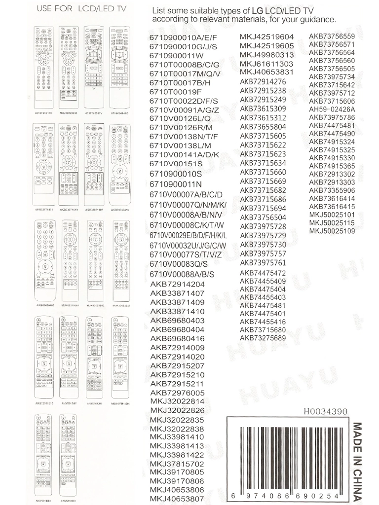 Универсальный пульт Huayu RM-L657 для телевизоров марки LG.
