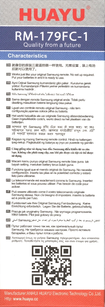 Работает без настройки и заменяет все пульты Samsung, наилучшее соответствие имеет с пультами в похожих корпусах.