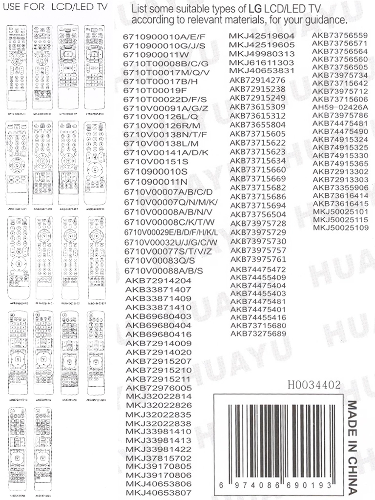 Купить "Универсальный пульт Huayu RM-L810 ( AKB73655802 )"