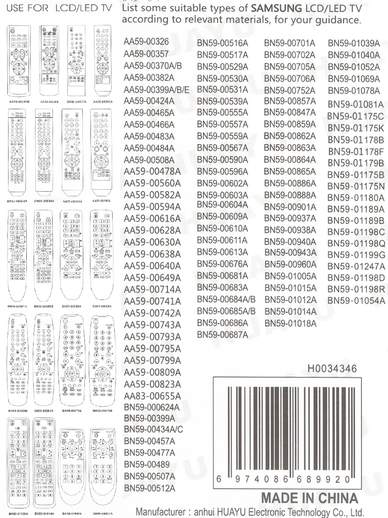 Универсальный пульт HUAYU RM-L808 для телевизоров марки Samsung!