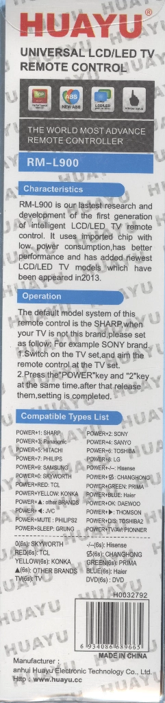 Универсальный пульт HUAYU RM-L900 для телевизоров различных брендов.