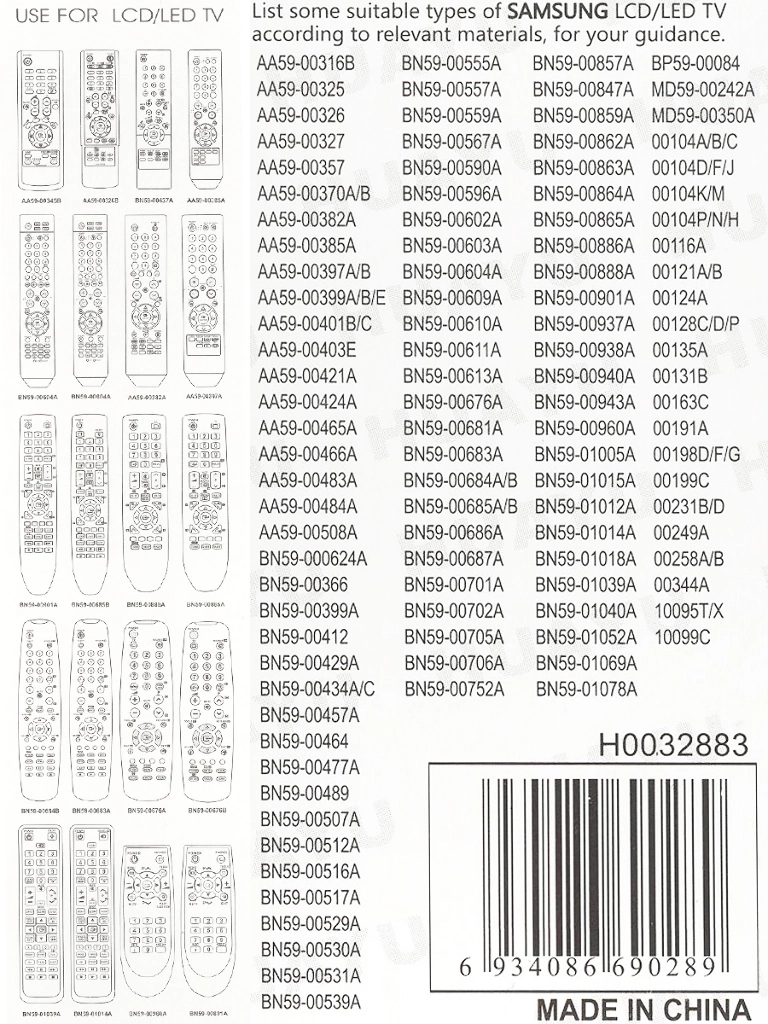 Универсальный пульт HUAYU RM-L800W для телевизоров марки Samsung!