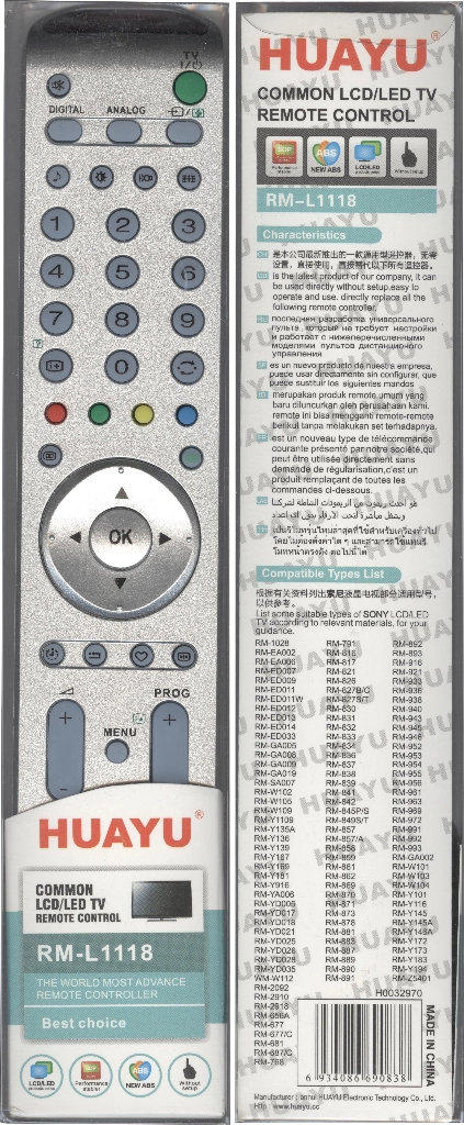 Универсальный пульт HUAYU RM-L1118 для телевизоров марки Sony!