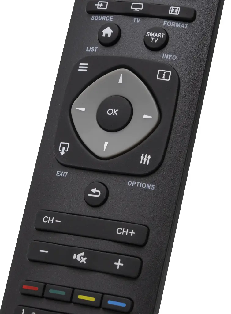 Выбирайте этот пульт, если Ваш родной пульт в таком же или похожем корпусе и вам нужны функции: Ambilight и SMART TV