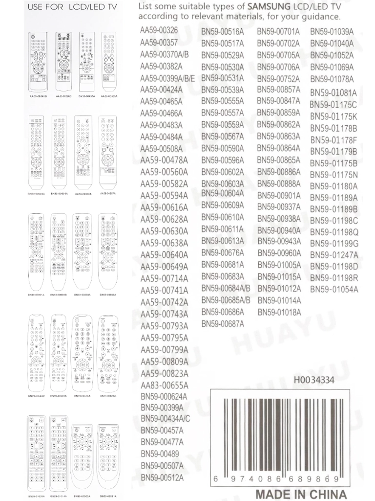 Пульт HUAYU заменяет модели пультов в похожем корпусе для телевизоров бренда Samsung