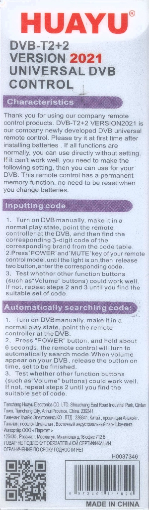 Купить "Пульт Huayu для приставок DVB-T2+2 ! универсальный"