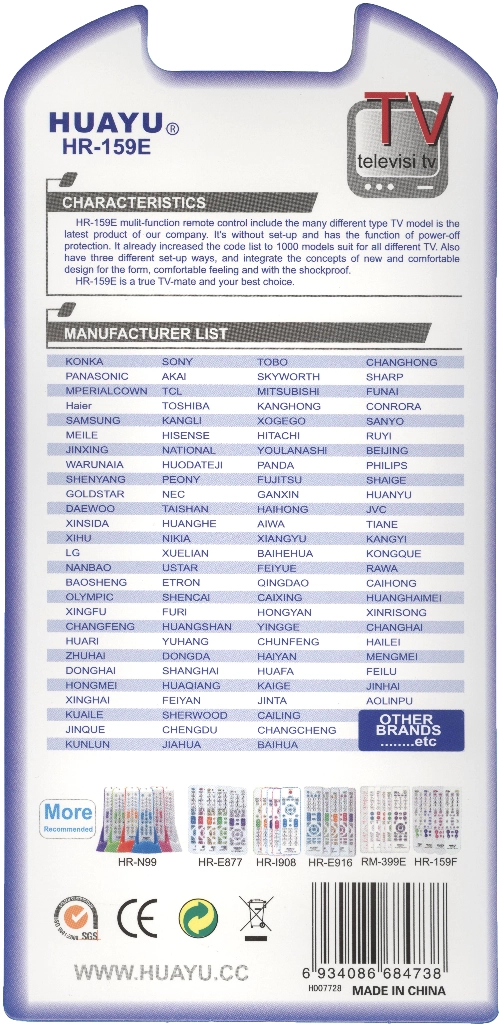 Купить "Универсальный пульт Huayu HR-159E BLACK"
