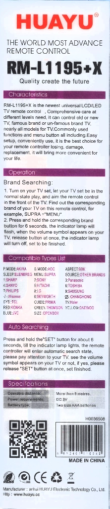 Купить "Универсальный пульт Huayu RM-L1195+X"