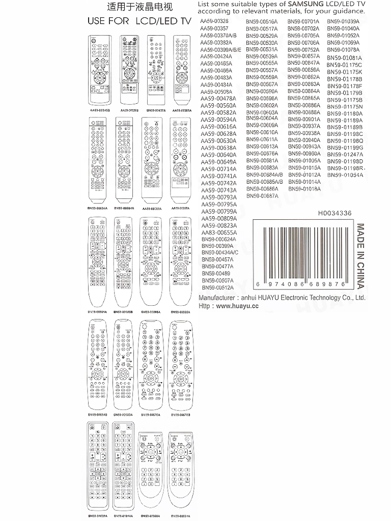 Универсальный пульт Huayu RM-625F для телевизоров марки Samsung.