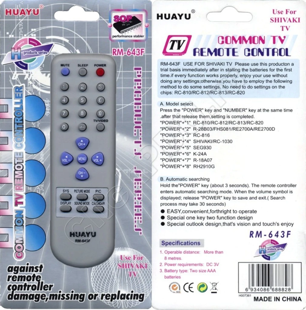 Купить "Универсальный пульт Huayu для Shivaki RM-643F"